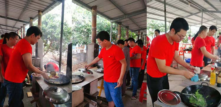中午,大家集合野餐。在達到野炊園后,大家開始分工合作,一下子,好像回到童年時光了,洗菜、生火、做菜等分工,看著大家不停了忙著、笑著、鬧著,同事間的默氣在不經意間自然流露出來。